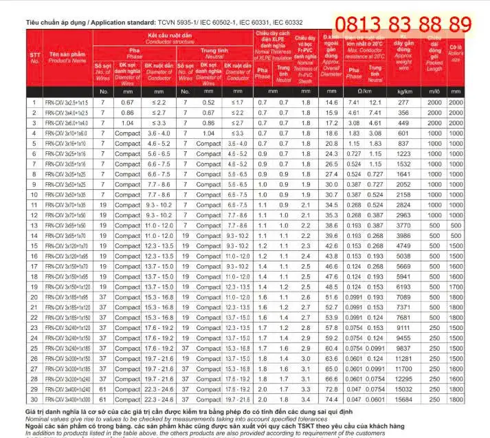 👉 [TẢI NGAY: BẢNG GIÁ CÁP CHỐNG CHÁY FRN 2026 MỚI NHẤT .PDF] (Lưu ý: Bảng giá đã bao gồm các kích thước từ 1.5mm2 đến 500mm2 cho tất cả các loại 1, 2, 3, 4 ,5 ruột dẫn)