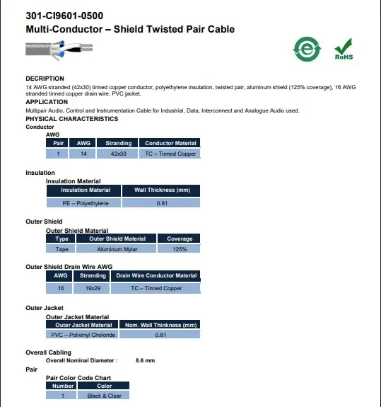 • 301-CI9301-0500: 20AWG 1 pair shielded.